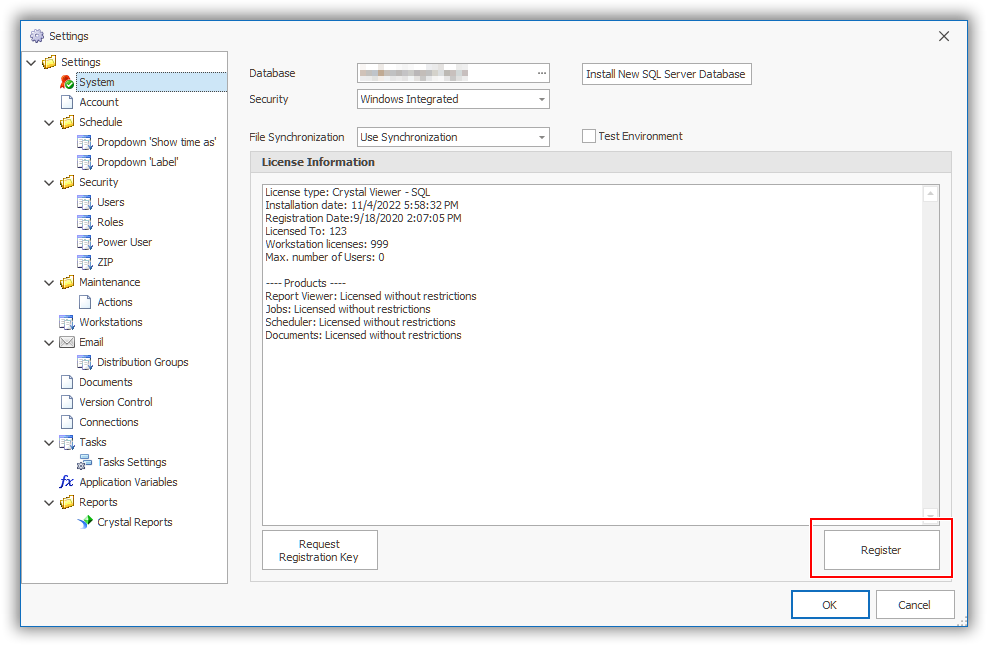 RT Report Manager supports 2 database types: Local database and SQL Server database