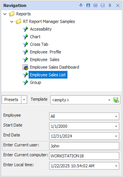 RTRM provides a few samples to demonstrate different technique to run reports and jobs. For example, there is Dashboard report, fully created in the internal Dashboard editor and sample jobs for Crystal reports bursting and Data driven reports.